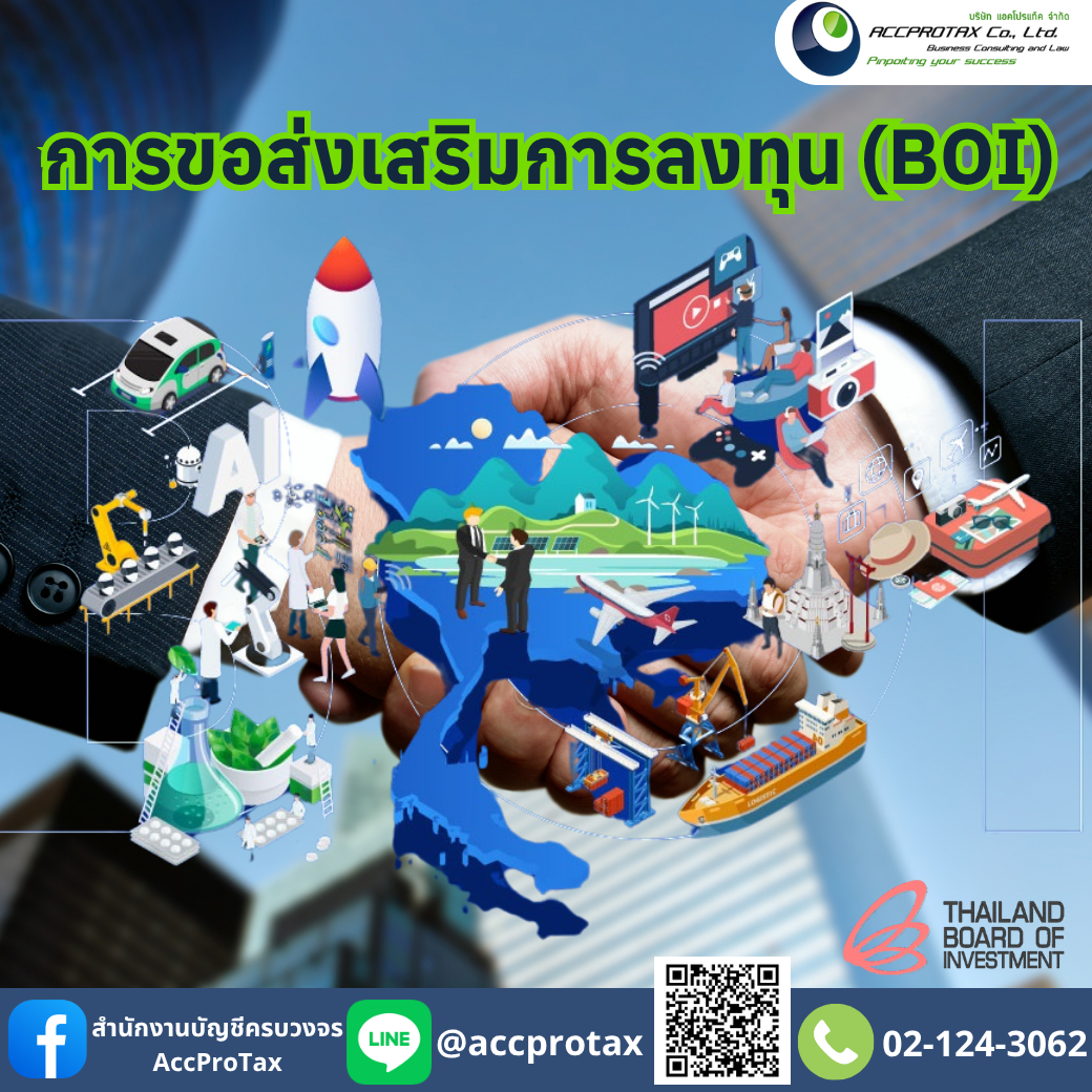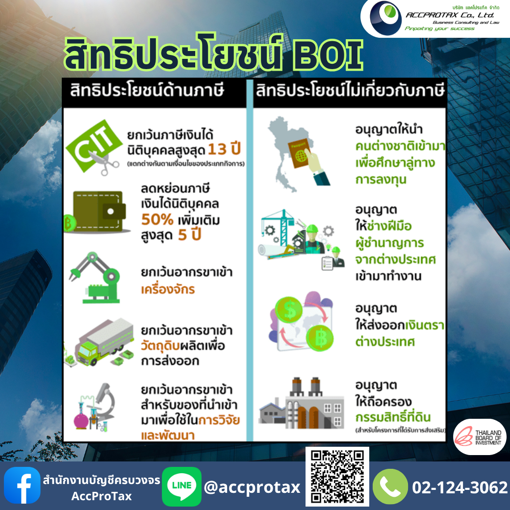 BOI โดยทั้งนี้จะขึ้นอยู่กับการพิจารณาของคณะกรรมการส่งเสริมการลงทุน BOIตามคุณสมบัติ