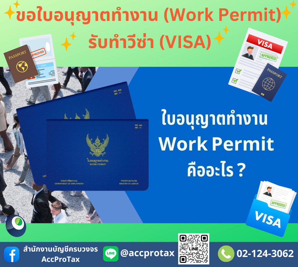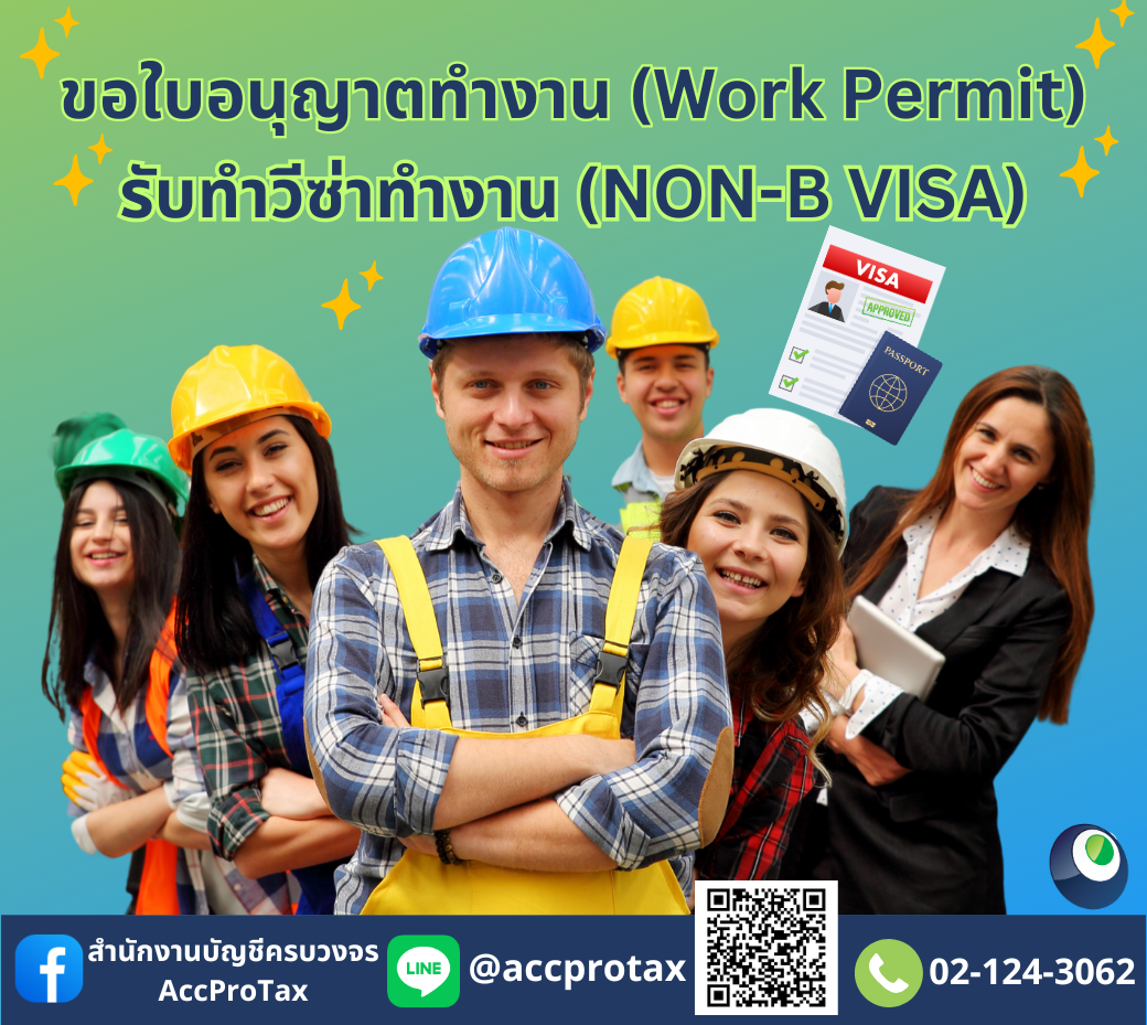 AccProTax (แอคโปรแท็ค) ยินดีให้คำปรึกษา และรับจดทะเบียนขอใบอนุญาตใบอนุญาตทำงาน (Work Permit) และขอวีซ่าทำงาน (VISA NON-B) ให้ท่านตั้งแต่เริ่มต้นจนจบทุกขั้นตอน จนได้รับใบอนุญาต