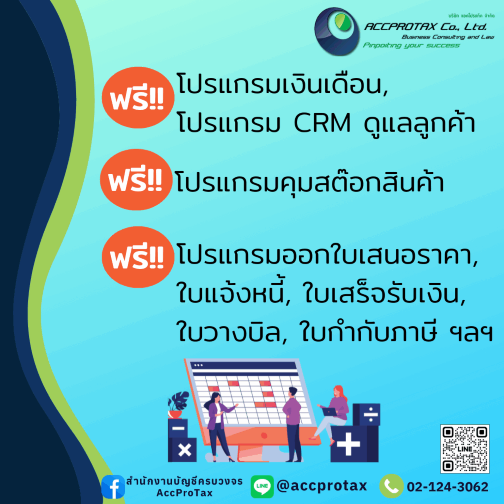 เพื่อวางแผนภาษี ฟรี! สำหรับผู้ประกอบการที่ใช้บริการจดทะเบียนบริษัท/หจก. กับ AccProTax เท่านั้น