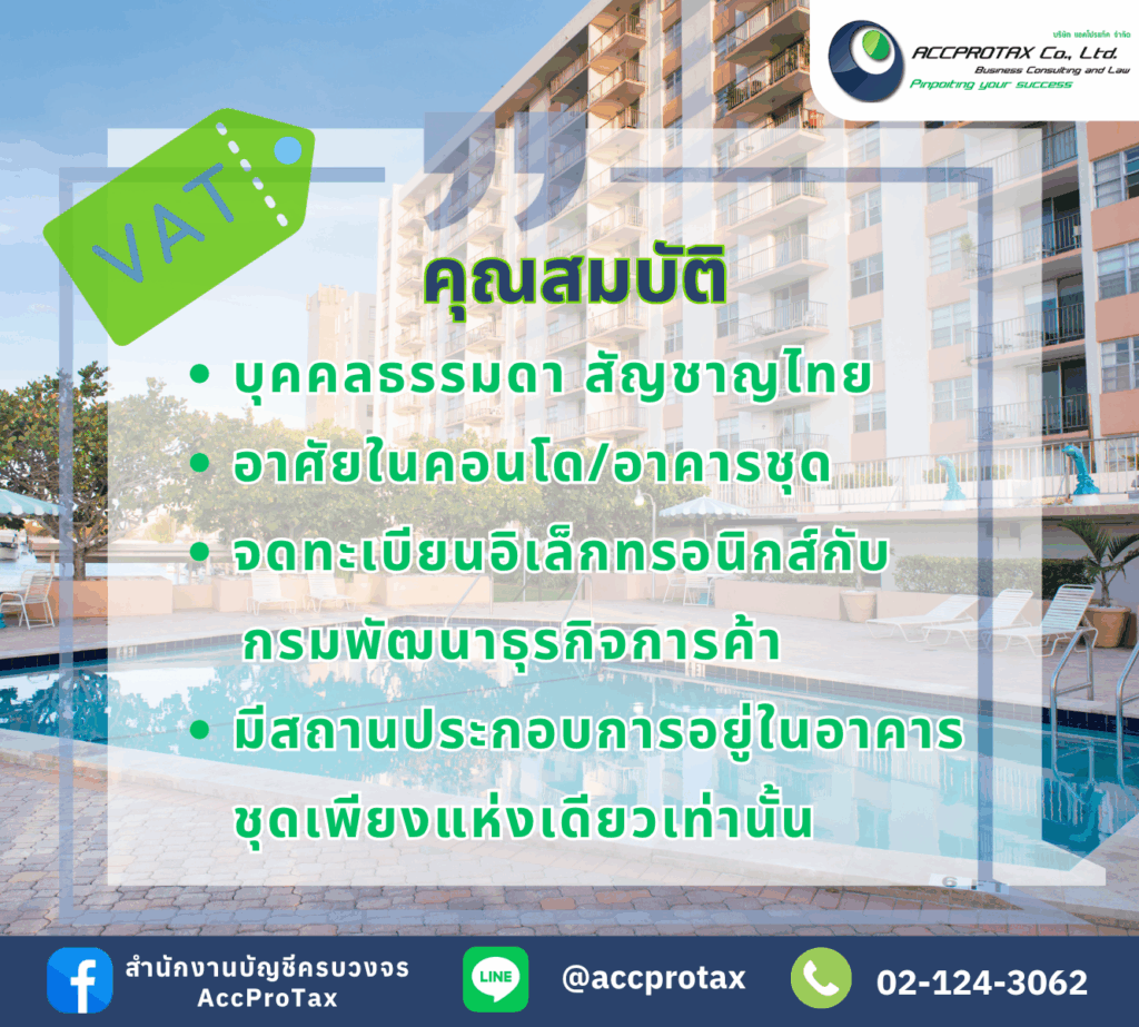 - ต้องได้รับความยินยอมจากเจ้าของห้องชุด: หากผู้จด VAT ไม่ใช่เจ้าของเอง ต้องมีหนังสือยินยอมให้ใช้ห้องชุดเพื่อประกอบการจากเจ้าของกรรมสิทธิ์