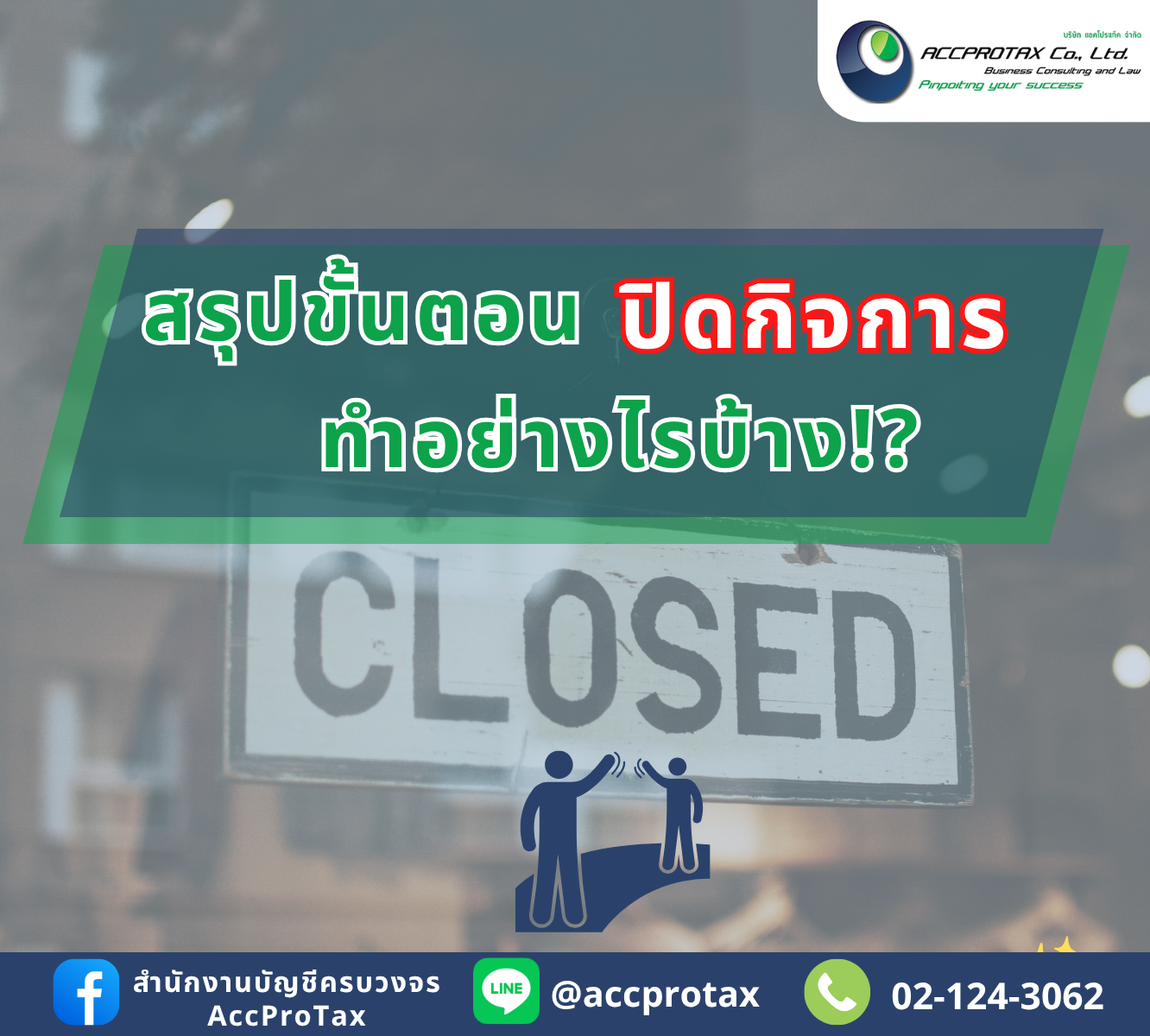 - ผู้ชำระบัญชีต้องแจ้งเลิกประกอบกิจการต่อกรมสรรพากรภายใน 15 วัน นับจากวันที่เลิกกิจการ โดยยื่นแบบ ภ.พ.09 (สำหรับบริษัทที่จดทะเบียนภาษีมูลค่าเพิ่ม) และแบบอื่นๆ ที่เกี่ยวข้อง